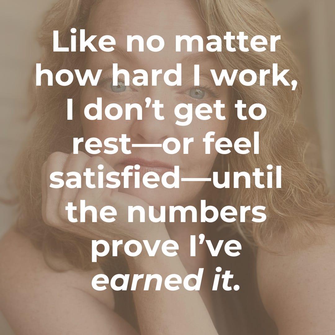 Like no matter how hard I work, I don’t get to rest—or feel satisfied—until the numbers prove I’ve “earned it.”